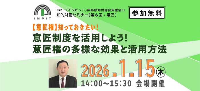 意匠制度(意匠法)に初めて接する方、意匠制度についてはある程度知っているけれど、どのように活用したら良いのか知りたい方を対象に、意匠権の多様な効果とさまざまなケースにおける活用方法を紹介します。参加は無料です。ご参加ください。