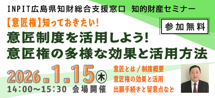 知的財産権制度に関する普及・啓発及び知財担当者の実務能力の向上を目的とし、各種講演会、セミナー等を開催し、中小企業等への知財支援の充実を図るとともに知財人材の育成を推進します。