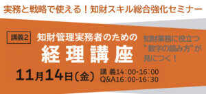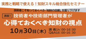 実務と戦略で使える!知財スキル総合強化セミナー~知財担当者・技術者に求められる「これからの視点」(10/30~12/4)