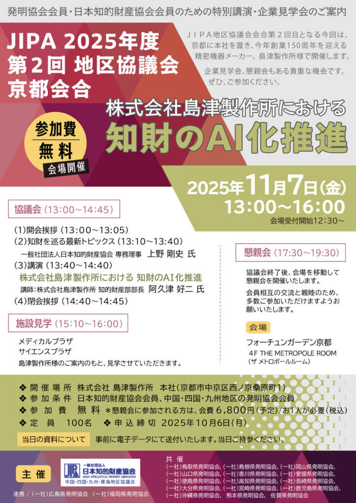 JIPA 2025年第2回中国・四国・九州地区協議会~特別講演・企業見学会(京都・島津製作所本社)