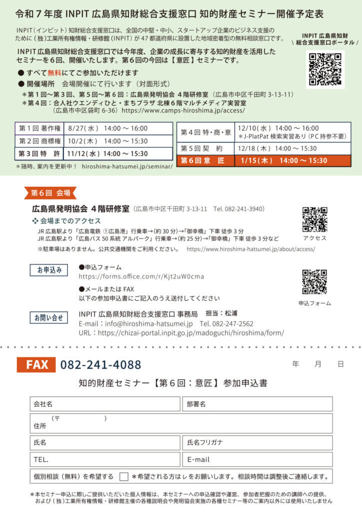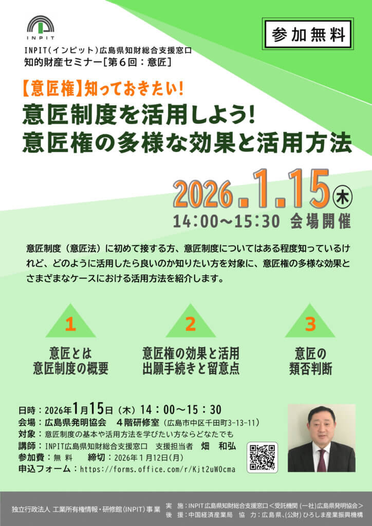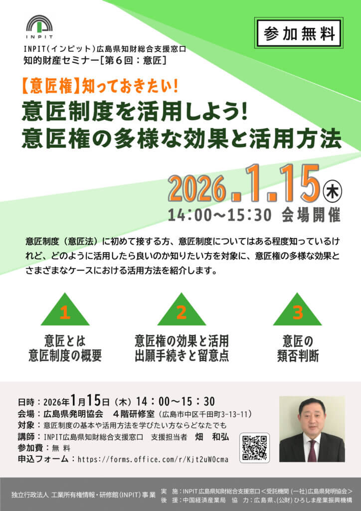 INPIT(インピット)広島県知財総合支援窓口 知的財産セミナー